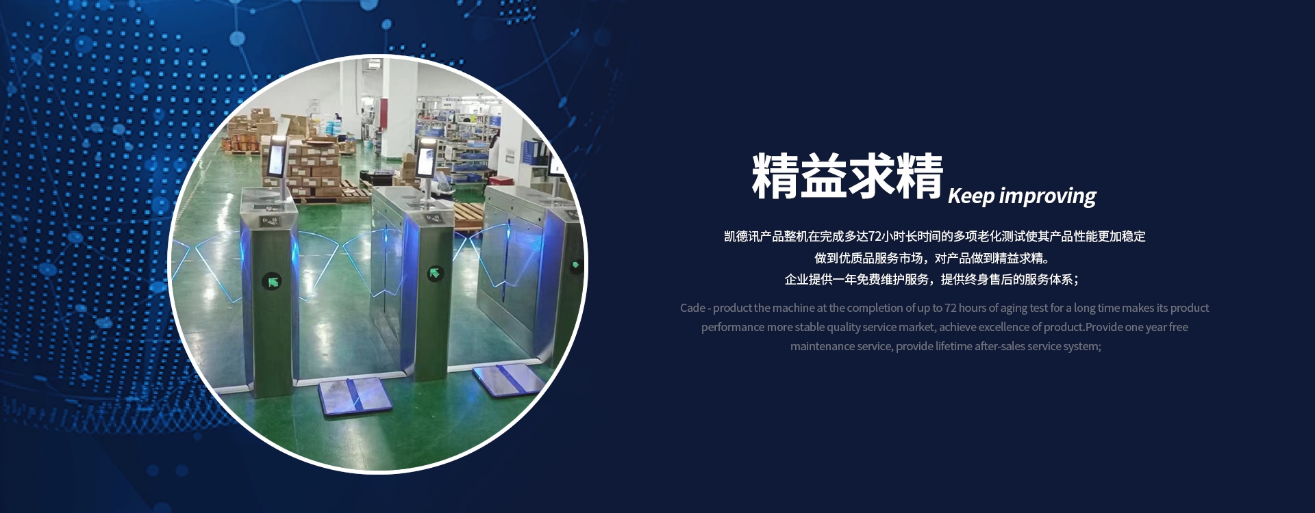 深圳市凱德訊科技有限公司成立于2003年,注冊資本500萬元,位于港珠澳大灣區(qū)的深圳市,公司集研發(fā)、生產(chǎn)、銷售電子行業(yè)防靜電門禁系統(tǒng)和民用智能通道系統(tǒng)的綜合性企業(yè)。公司擁有自主產(chǎn)權(quán)的產(chǎn)品并一直致力于ESD門禁系統(tǒng)、智能安防門禁系統(tǒng)、景區(qū)通道閘機(jī)、人臉識別閘機(jī)、消費(fèi)系統(tǒng)、智能翼閘的研發(fā)生產(chǎn)與銷售。凱德訊目前擁有多款功能齊全的系統(tǒng)軟件及多款硬件產(chǎn)品,包含成型加工、機(jī)芯研發(fā)、軟件開發(fā)等技術(shù)均為本公司自主研發(fā)、獨(dú)立完成。14年來,凱德訊一直秉承以用戶需求為核心,穩(wěn)定、實用、智能的產(chǎn)品是我們開拓市場的基石,務(wù)實進(jìn)取的精神是我們孜孜不倦的追求,全方位真誠的服務(wù)是我們對您永恒的承諾。